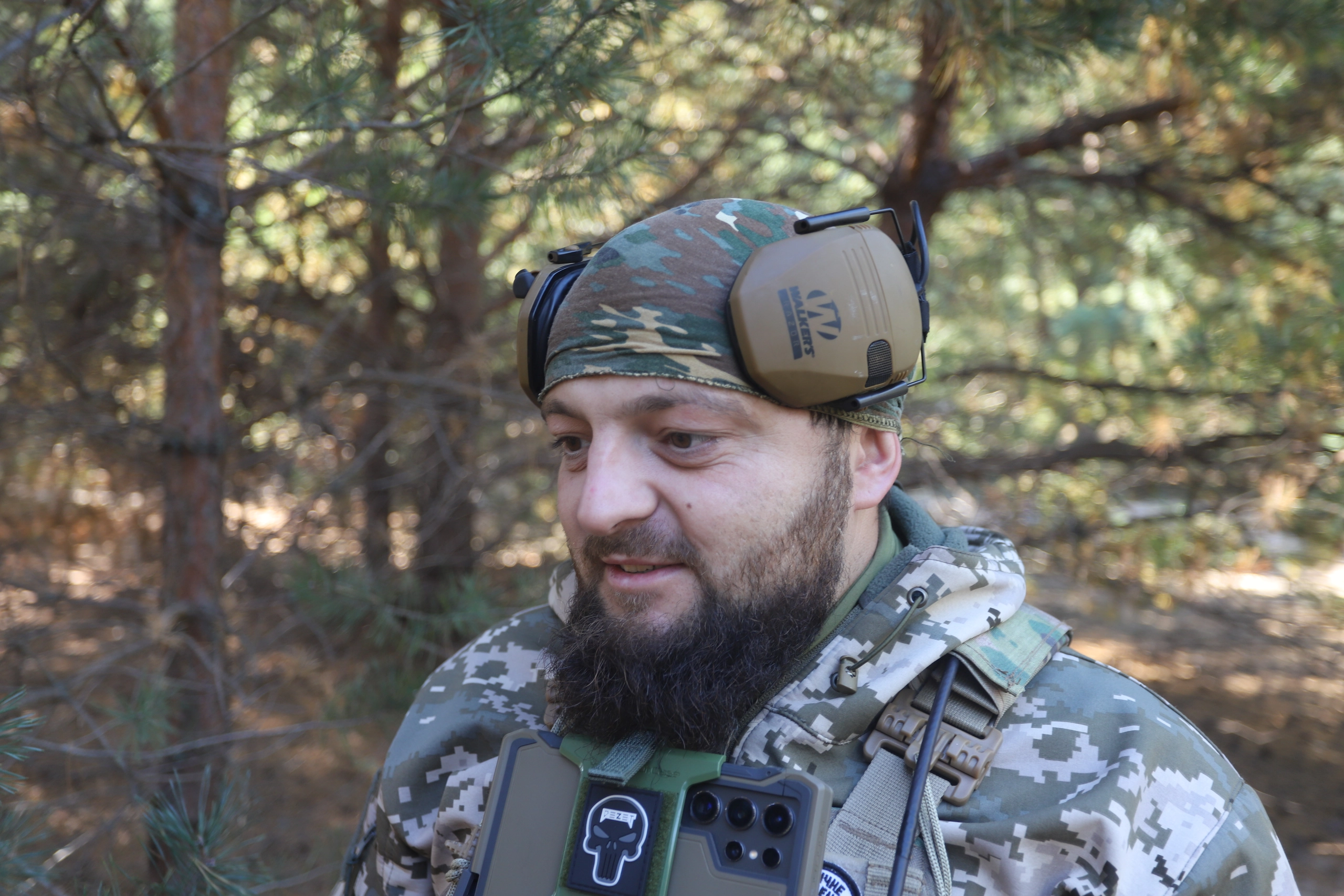 Callsign "Shambala" (sitting) instructing soldiers. Photo by Sergii Kostezh/Kyiv Post “The enemy is constantly moving, so we immediately give them exercises to train their eye. At 50 meters, 150, then switching to 200. Everything must be worked out – your breathing gets shaken, dust rises. We do it in a game-like format to trigger adrenaline – we determine the winner; it’s not just that they shoot and that’s it,” Shambhala says.