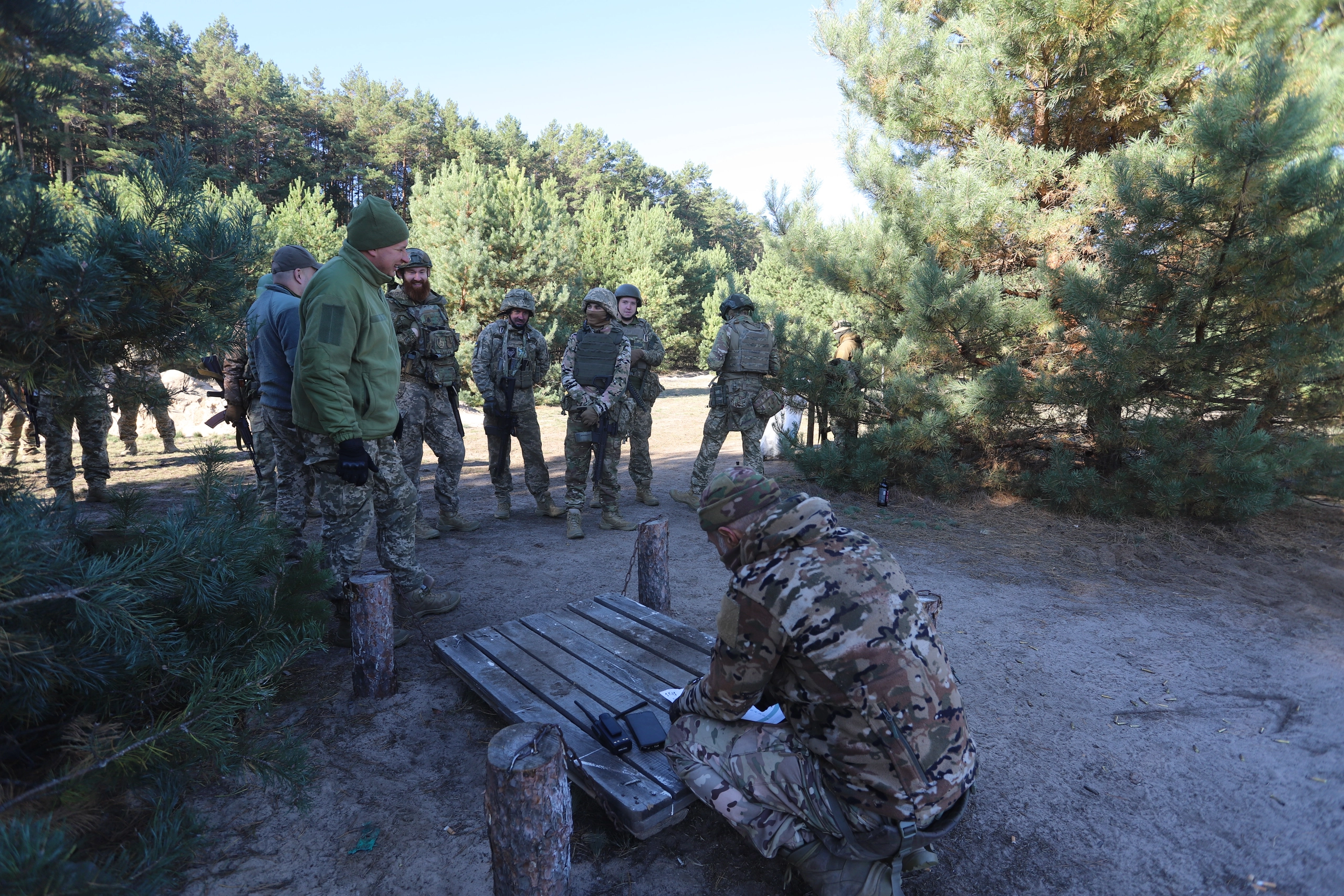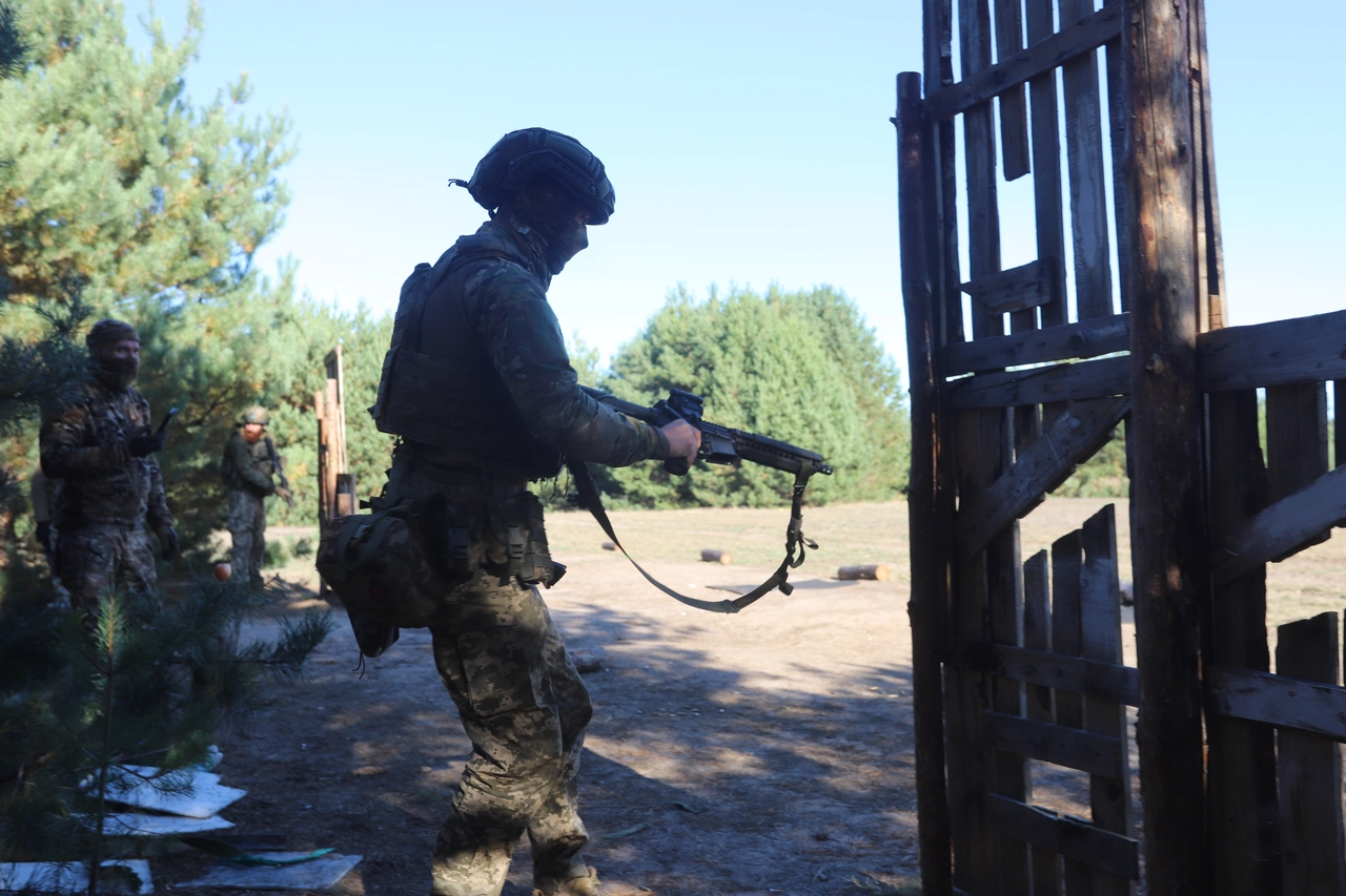 Callsign "Shambala". Photo by Sergii Kostezh/Kyiv Post AdvertisementTraining process. Photo by Sergii Kostezh/Kyiv Kost “Each exercise is about survival – both for each of them and for the group as a whole. A small group can inflict much greater damage than an entire infantry company. Our training principle is called ‘lone soldier in the field.’ One person, moving, knowing camouflage, knowing the technical characteristics of his weapon, reading the enemy’s intent, can strike, withdraw, strike again, withdraw again – so we can hold back the enemy with a small, mobile survivable group,” says Shambhala.